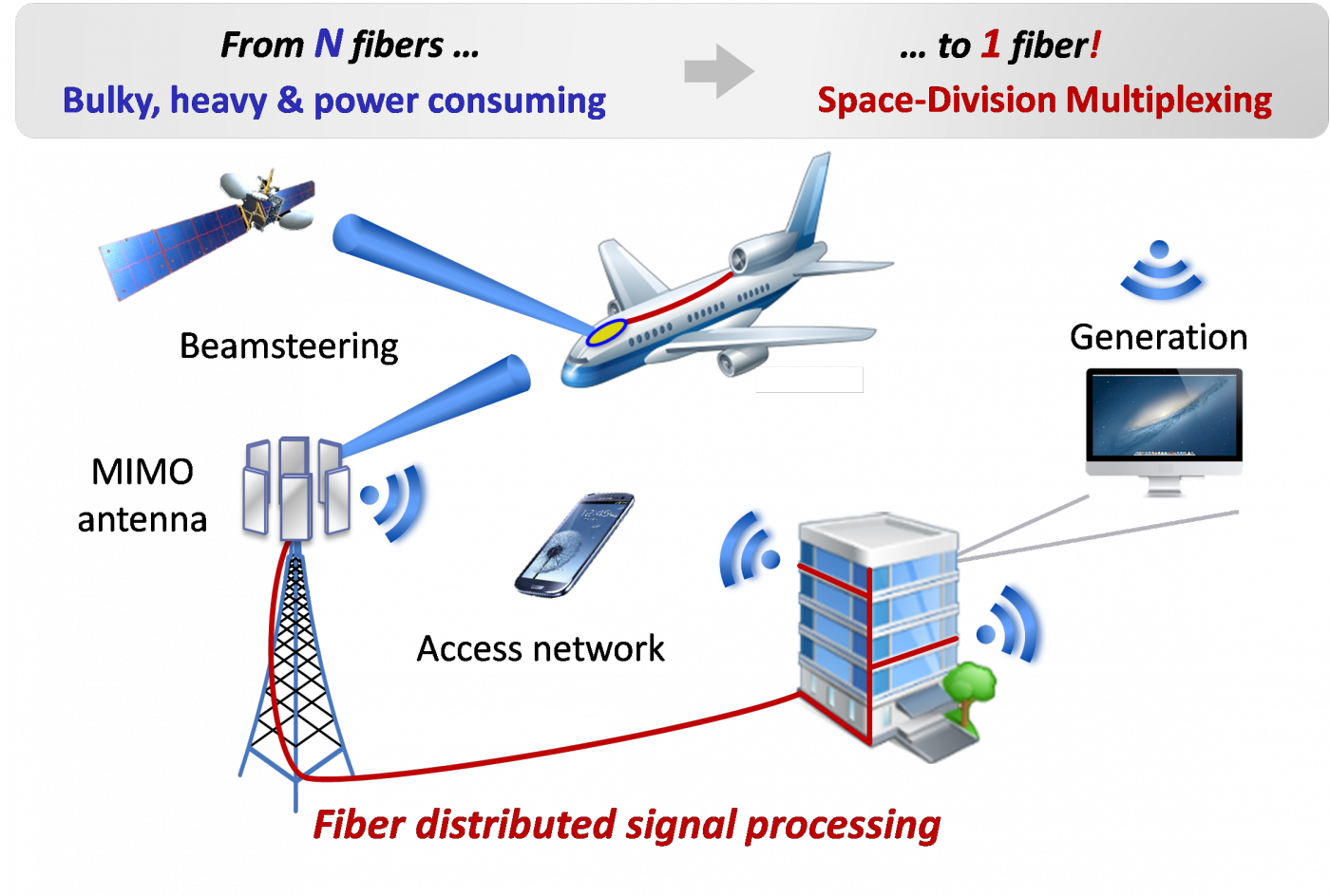 The future display of fiber-wireless 5G and mm-wave communications will benefit from the compactness and spatial parallelism of the developed SDM technologies leaving behind bulky, heavy, power-consuming and expensive replication architectures.
